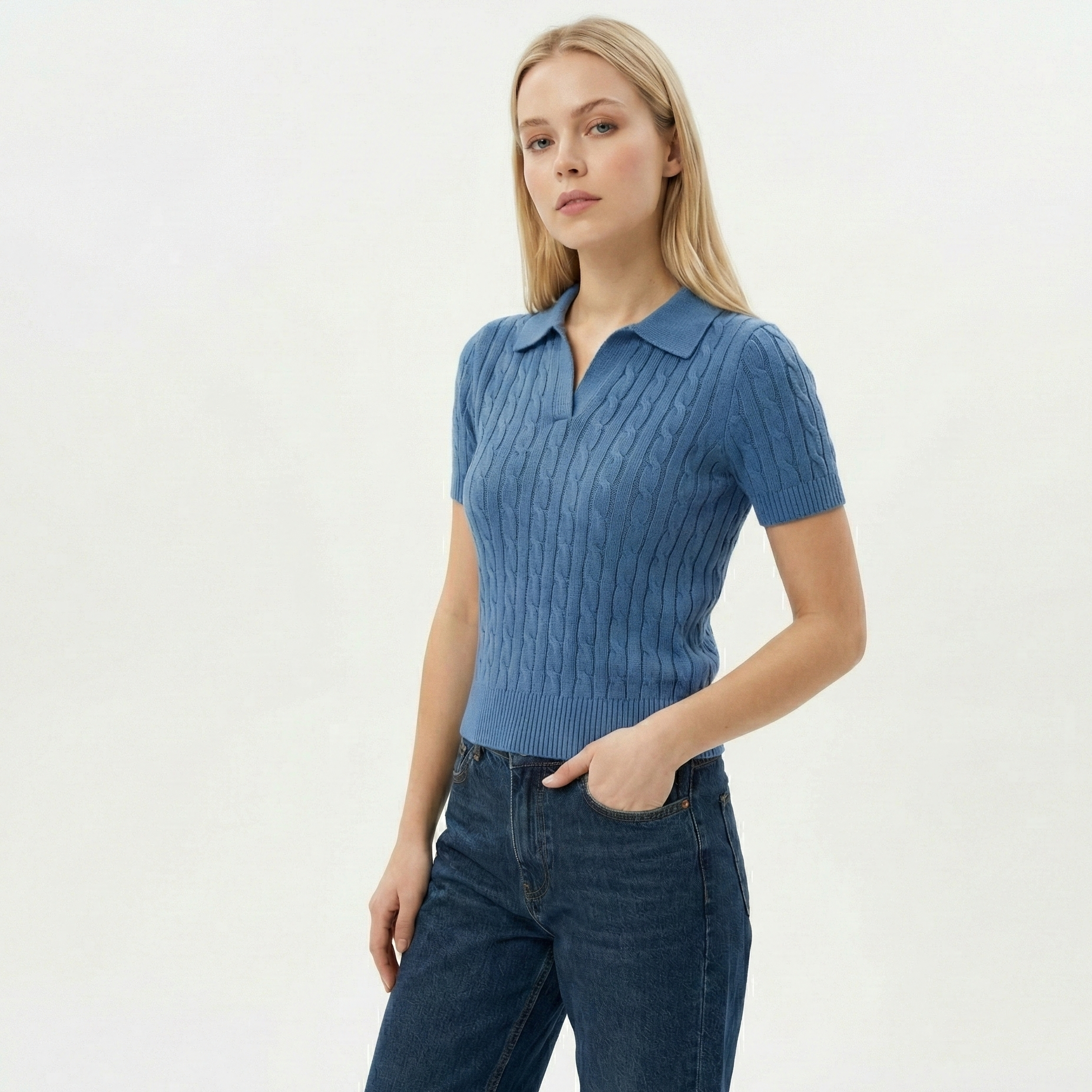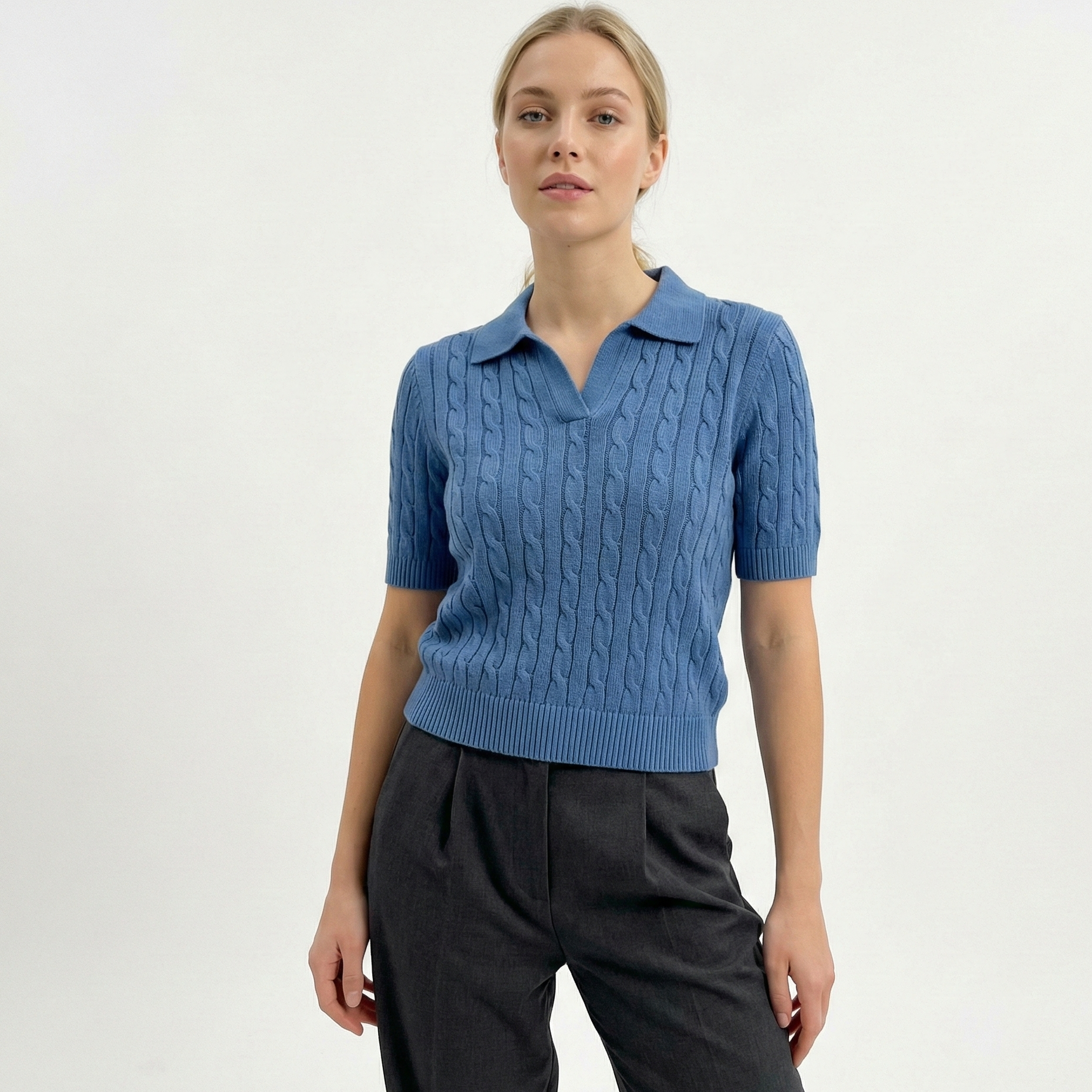 Chomba trenzada confeccionada en material Bremer, una prenda de calidad superior que combina resistencia y confort. El tejido trenzado proporciona estructura y flexibilidad, adaptándose perfectamente al cuerpo. Material duradero y de fácil mantenimiento, ideal para uso diario. Una inversión en prendas que perduran en el tiempo sin comprometer el estilo ni la comodidad.